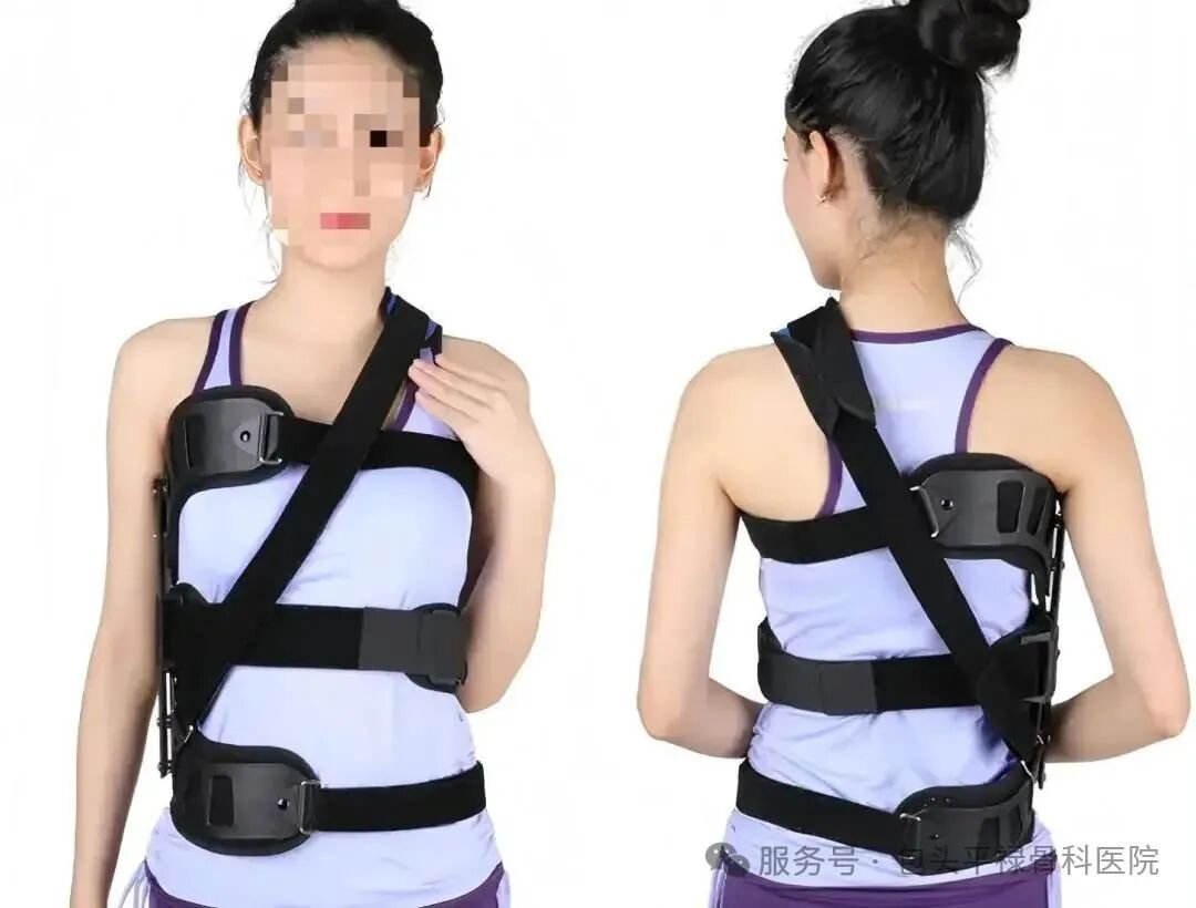 专业评估后,佩戴矫形支具并配合呼吸扩张训练进行康复治疗。