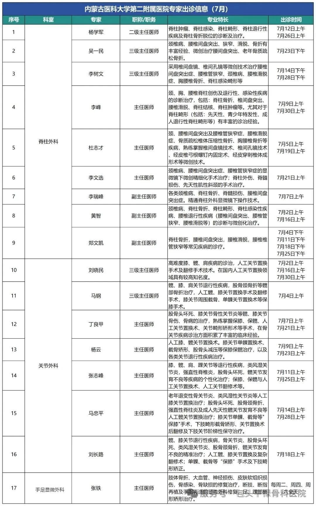 自7月起,内医大二附院脊柱外科、关节外科、创伤外科、疼痛麻醉科等权威专家团队将常态化进驻我院,与本院专家联合开展坐诊、手术、疑难病例会诊等医疗服务。