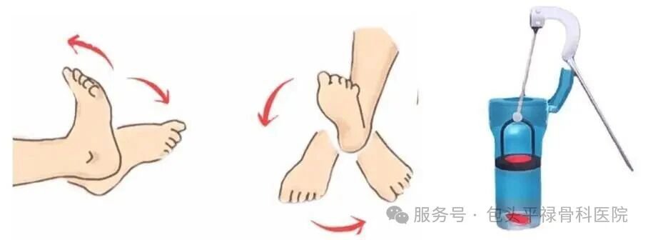 如此反复、有节奏地进行,就完成了一次标准的踝泵训练。一组做15-20次,每天做3-5组,训练要领:慢、用力、到最大角度。