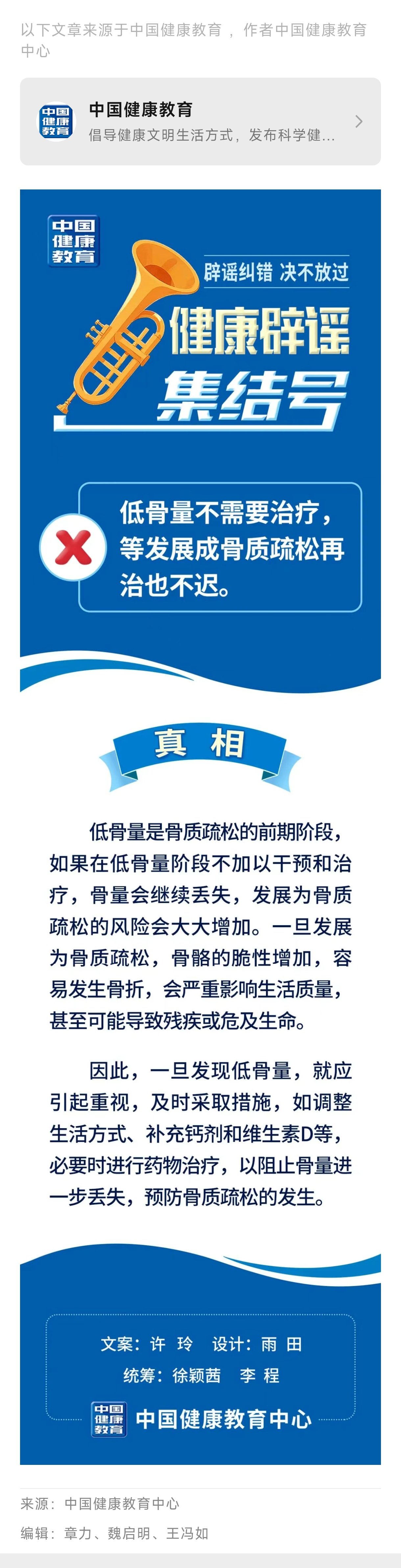 低骨量不需要治疗等发展成骨质疏松再治也不迟
