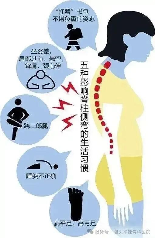 谨慎运动(可能加重侧弯)
