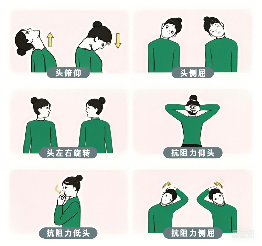 ①端正坐姿,胸部挺起,肩部放松,使用手机和电脑时,尽量保持平视角度;夏季在空调房内注意颈部保暖;