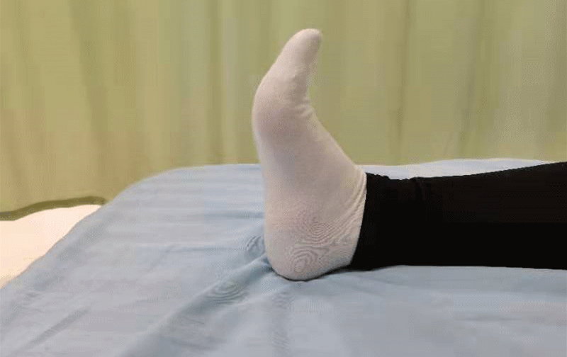 如此反复、有节奏地进行,就完成了一次标准的踝泵训练。一组做15-20次,每天做3-5组,训练要领:慢、用力、到最大角度。