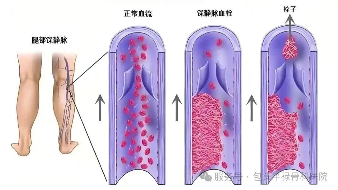 可一旦因为手术、卧床等原因长时间不动,这个“泵”就停止了工作。下肢血液流速会显著变慢,像河水流速变缓容易沉积泥沙一样,血液也容易凝固形成血栓,即深静脉血栓。血栓一旦脱落,随血流到达肺部,可能引发致命的肺栓塞。